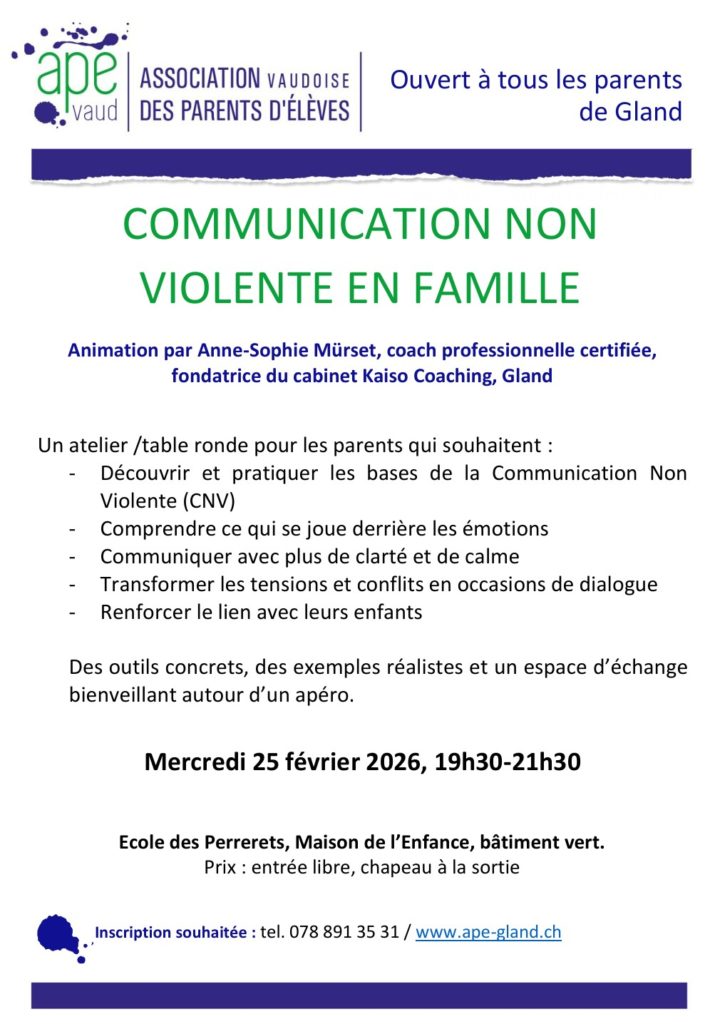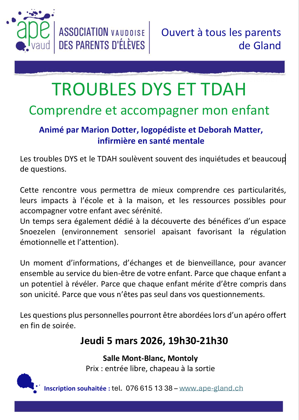 L’association des parents de Gland est heureuse de vous proposer, en ce début 2026, 2 tables rondes sur des thématiques précises.